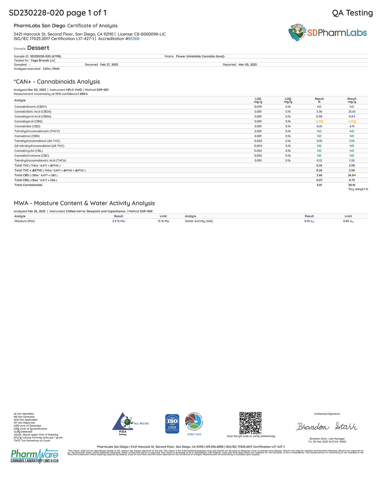 Effect: Dessertz, a premium CBD flower with an impressive 26% CBDa, offers a blissful experience that starts with uplifting euphoria and happiness, followed by soothing full-body relaxation. CBDa, the raw form of CBD, is known for its anti-inflammatory, anti-anxiety, and calming properties, making Dessertz an excellent choice for those seeking natural stress relief and mental clarity. Perfect for leisurely days or moments when you need to unwind, Dessertz delivers a sense of balance and well-being without any psychoactive effects. With its smooth, mellow flavor and potent therapeutic benefits, Dessertz is your ideal companion for embracing relaxation and joy.