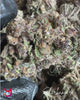 Color | A striking fusion of deep violet and dark purple hues, seamlessly intertwined with lush forest green accents. The bud is further enhanced by fiery orange pistils, adding a bold contrast, while a thick, glistening layer of frosty white trichomes blankets the surface, giving it a dazzling, crystalline finish. |